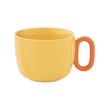 Apportez une touche colorée, ludique et dynamique à votre table avec cette tasse déjeuner jaune en porcelaine "Creative" et sa anse orange géométrique et décalée. Une tasse idéale pour épater vos invités pendant une pause thé/café.