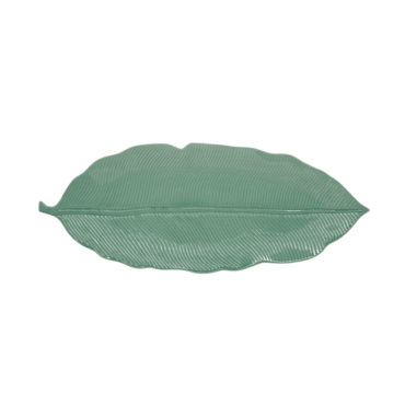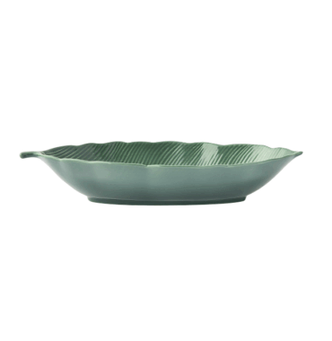 Plat creux en forme de feuille tropicale 30x13 cm. Idéal pour servir, salades, légumes ou desserts avec une touche exotique et élégante.