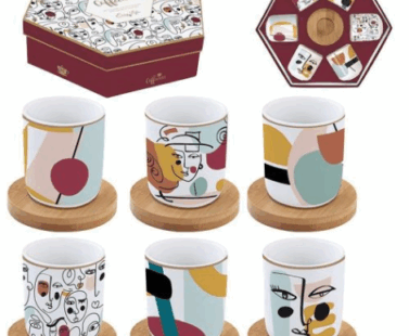 Coffret 6 tasses à café Bambou Modernisme : porcelaine décorée de motifs bambou modernes, résistante et compatible lave-vaisselle. Idéal pour le quotidien ou cadeau.