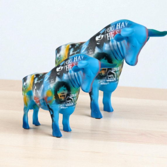 Taureau Street Art – bleu – H20cm