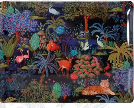 Le plateau Gien 46,4 x 36,4 cm décor Jardin du Palais incarne tout le savoir-faire de la tradition française en matière d’art de la table .Alliance de la Faïencerie de Gien et du designer Pierre Frey, deux savoir-faire français reconnus, la collection Jardin du Palais entremêle couleurs, motifs, dessins très fins dans un monde végétal luxuriant .