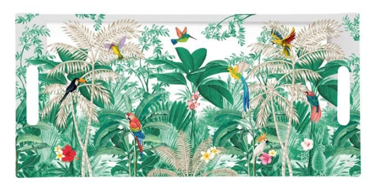 Apportez une note d’exotisme à votre intérieur avec ce plateau rectangulaire. Son design raffiné, inspiré de la nature tropicale et de motifs luxuriants, mêle couleurs vibrantes et élégance contemporaine.