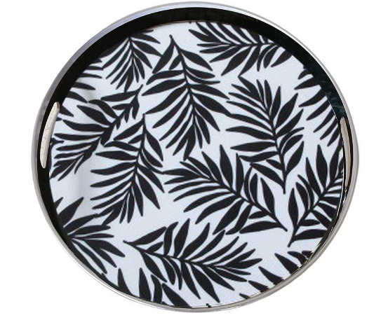 Apportez une touche graphique et contemporaine à votre intérieur avec ce plateau rond Home au motif feuillage noir et blanc.