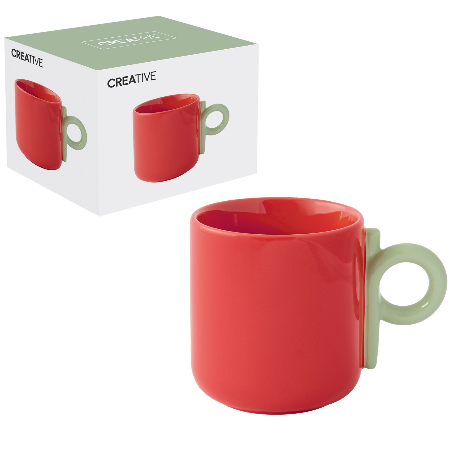 Ajoutez une touche de couleur à vos pauses café avec le Mug Creative. Son design rouge et son anse verte en font un indispensable aussi élégant que pratique pour savourer vos boissons chaudes.