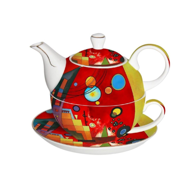 Inspirée par l’univers abstrait et visionnaire de Wassily Kandinsky, cette théière célibataire fait dialoguer art et rituel du thé. Les formes géométriques et les jeux de couleurs s’assemblent en une composition dynamique, emblématique du mouvement abstrait.