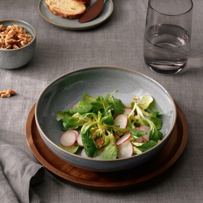Fabriquées en grès de haute qualité, ces assiettes à pâtes séduisent par leur finition légèrement texturée et leur bord délicatement contrasté, signature de la collection Denim Saison. Chaque pièce présente de légères variations, rendant chaque table unique et authentique.