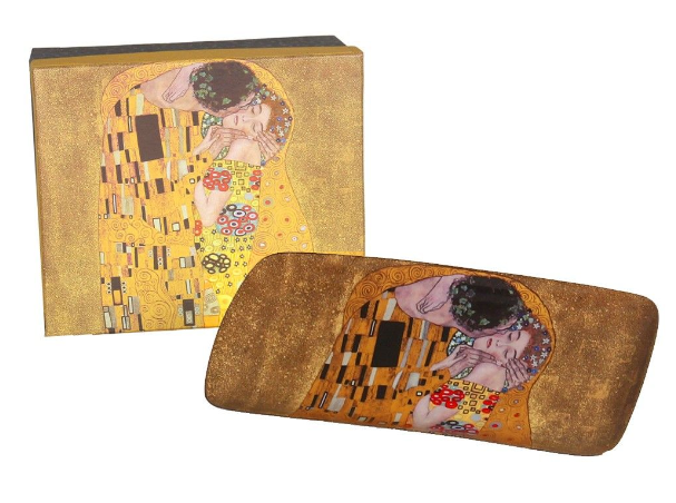 Plat rectangulaire inspiré de Le Baiser de Gustav Klimt, mêlant or, motifs délicats et élégance intemporelle.