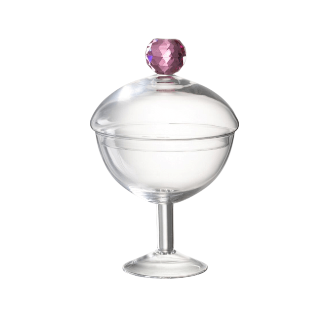 Apportez une touche d’élégance romantique à votre décoration avec la bonbonnière en verre au bouchon rose taillé diamant . À la fois raffinée et intemporelle, cette bonbonnière décorative séduit par son design délicat et son bouchon facetté effet diamant qui capte la lumière avec subtilité.