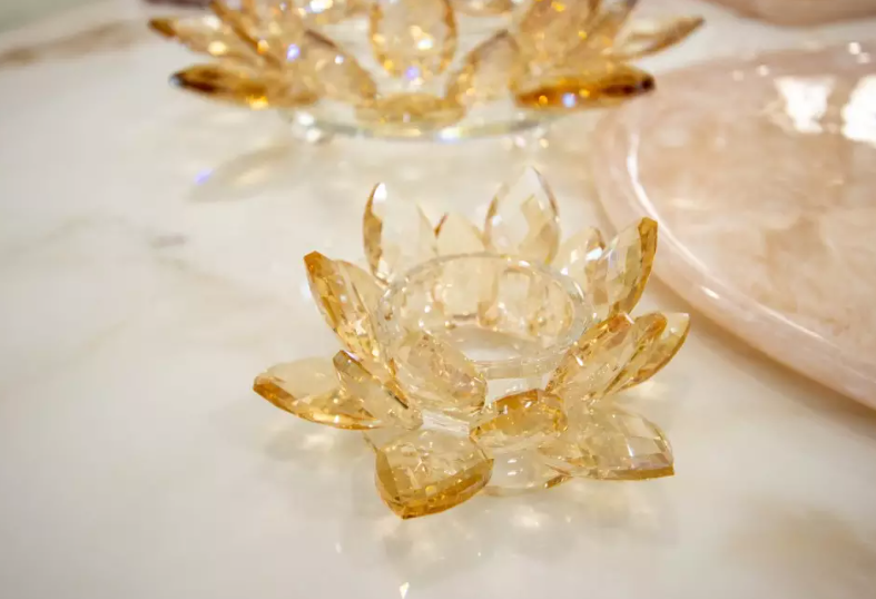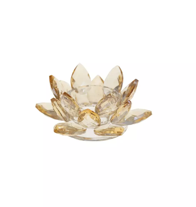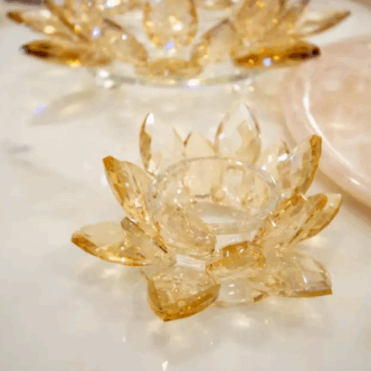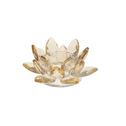 Laissez-vous charmer par l’éclat du bougeoir Lotus Ambre, dont la lumière douce et ambrée crée une ambiance chaleureuse.