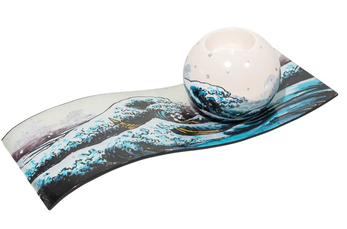 Apportez élégance et art japonais à votre décoration avec le bougeoir sur plat Hokusai. Raffiné et pratique, il sublime chaque ambiance.
