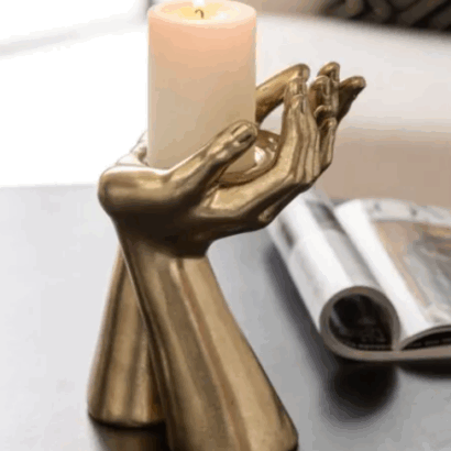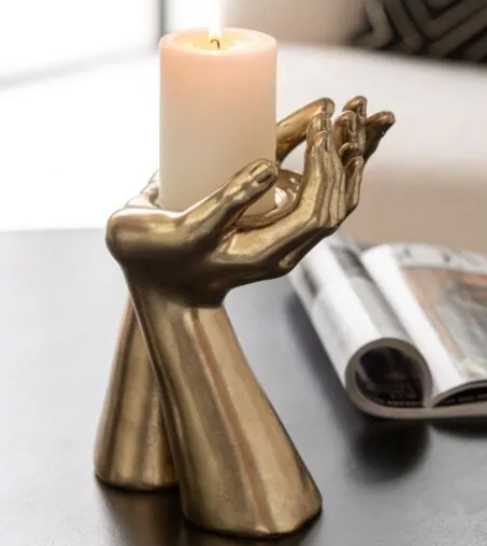 Ce porte bougie en forme de mains en résine dorée apporte une touche artistique et raffinée à votre décoration.