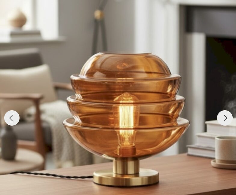 Le verre coloré filtre subtilement la lumière pour offrir un éclairage doux, idéal pour les moments de détente. Associée à un pied fin et minimaliste, cette lampe devient un véritable objet décoratif, autant qu’une source lumineuse fonctionnelle.