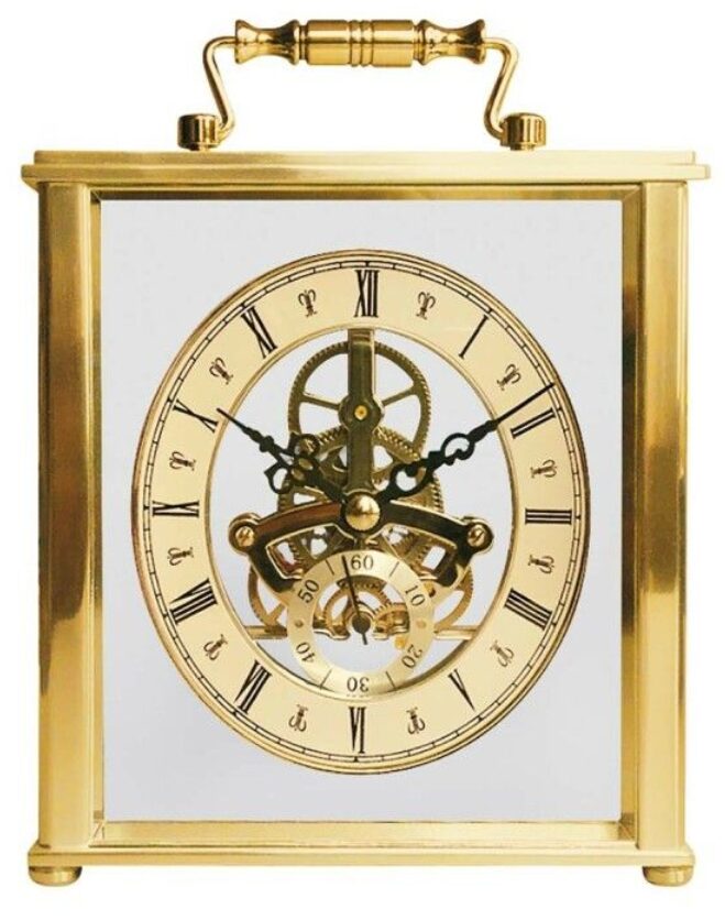 Pendule dorée à poser, élégante et intemporelle, idéale pour apporter une touche chic et lumineuse à votre intérieur.