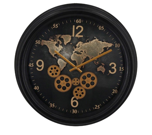 Alliez design industriel et élégance intemporelle avec la pendule engrenage mappemonde noir. Son mécanisme apparent et ses engrenages soigneusement détaillés font de cette horloge un objet décoratif unique, qui attire le regard et rythme votre espace avec style.