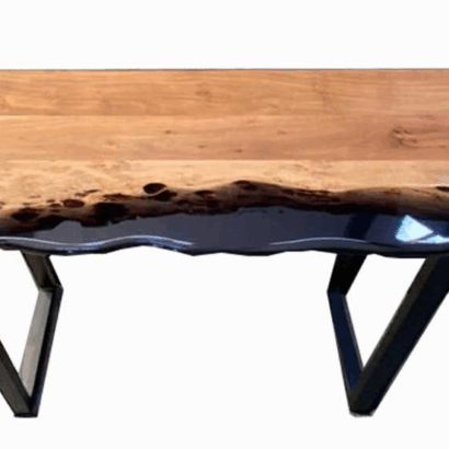 Chaque pièce de cette collection est unique : l’association du bois d’acacia et de la résine crée un effet visuel captivant, à la fois chaleureux et contemporain. Son épaisseur de 2,5 cm et sa structure robuste en font un meuble à la fois fonctionnel et esthétique.