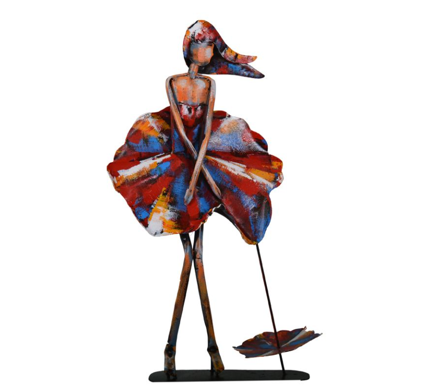Le métal est minutieusement façonné, découpé et assemblé afin de donner vie à une figure stylisée, pleine d’élégance et de mouvement.