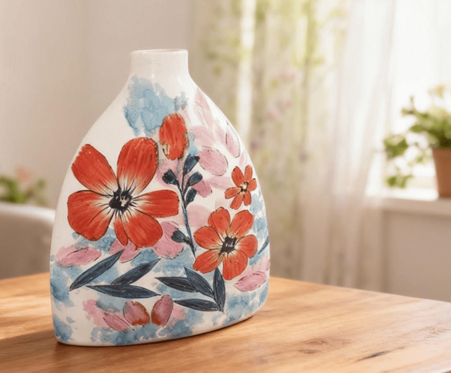 Sa finition délicate et ses nuances inspirées de l’aquarelle créent un effet léger et élégant, qui transforme ce vase en véritable pièce décorative.