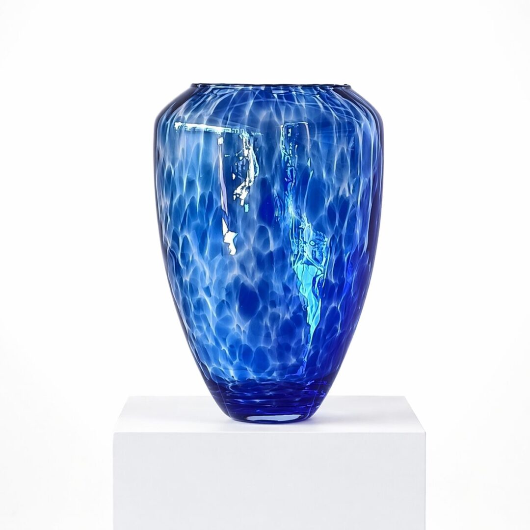 Apportez une note d’élégance à votre décoration avec ce vase bleu en cristal mouchetté, une pièce à la fois décorative et intemporelle. Son verre travaillé révèle un subtil jeu de transparence et de relief, où les mouchetures captent la lumière pour créer de magnifiques reflets.