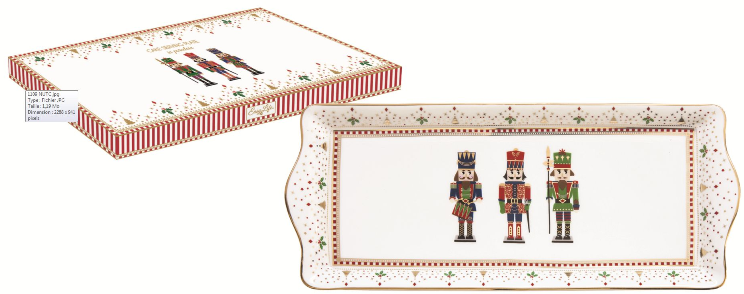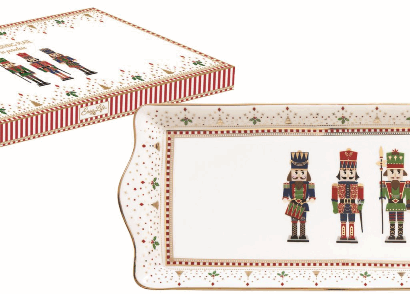 Ce plat à cake en porcelaine « Vintage Nutcrackers » sera parfait pour recevoir et présenter vos délicieuses pâtisseries sous une ambiance féérique et magique qui est celle de Noël.