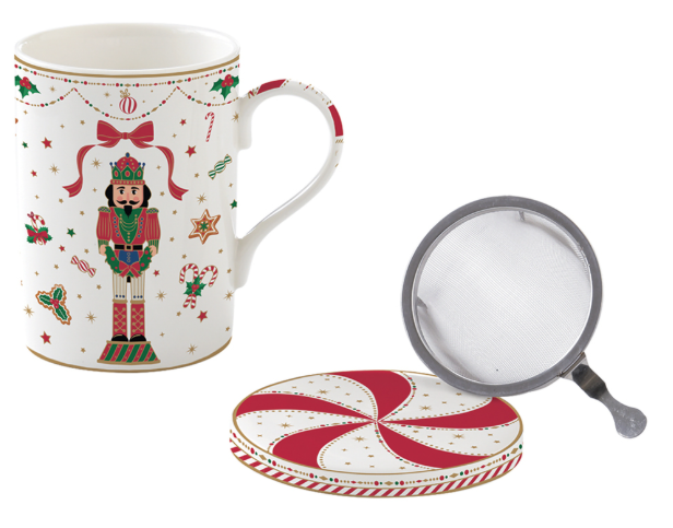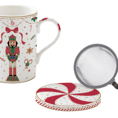 Tisanière en porcelaine 350ml aux motifs de Noël « casse-noisette ». Pour un moment de détente autour d’une boisson chaude sous la magie de Noël. Ce mug apportera une touche de féerie à votre table.